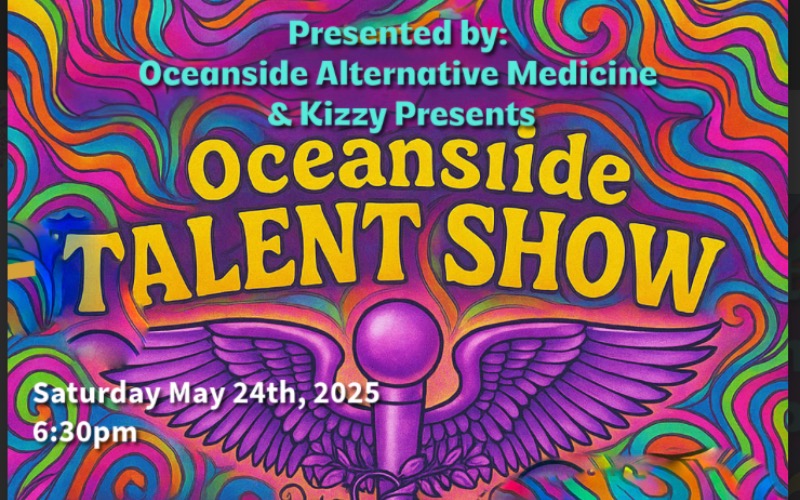 Oceanside Alternative Medicine & Kizzy invite you to join their first annual Oceanside Talent Show! This event is open to the public. Doors open at 6:30 p.m. Admission is free, with snacks and beverages provided. Contestants must register by sending an audition video to oceansidealternativemedicine@gmail.com. Opening acts featuring Ella, hosted by Kizzy Satchell, Fae Fae Mae and Dr. Devon Band. There is a $10 submission fee. Check out their website for the incredible prize packages! Come join the fun and witness the collective fun of our beautiful town!