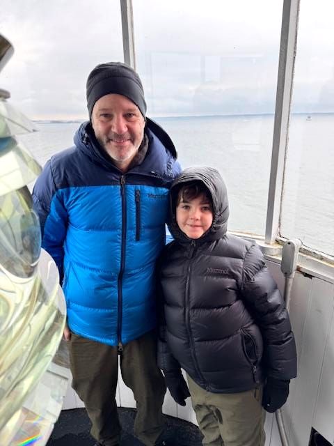 Visit Long Island Sound's oldest and tallest lighthouse. Photo: Oliver Marks & his dad visited Harbor Lighthouse from Massachusetts. Ford Gerritt.