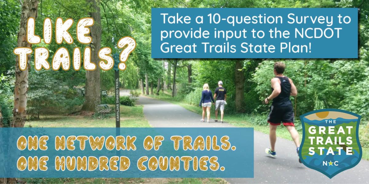 Available here, these surveys are a part of NCDOT’s effort to develop its statewide trail plan and 5-year implementation strategy, called the Great Trails State Plan.