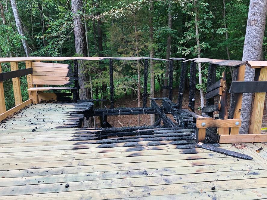 At approximately 6 a.m. on Tuesday, Aug. 11, the Wake Forest Fire Department responded to a fire at the park located at 800 E. Juniper Ave. First arriving crews quickly controlled and extinguished the fire, but the wooden deck sustained extensive damage.