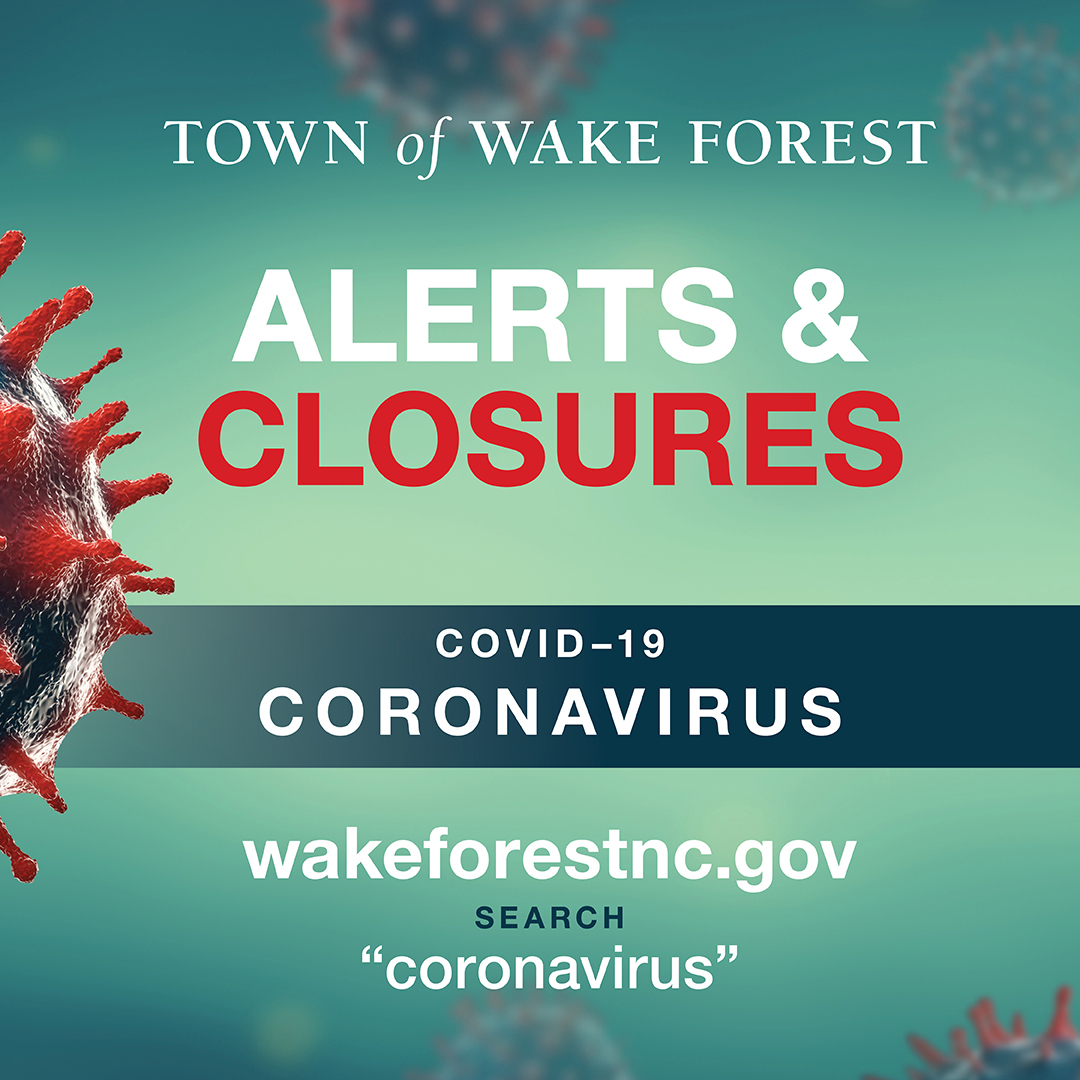 In accordance with Executive Order (EO) 147, all visitors to the Wake Forest Town Hall, 301 S. Brooks St., and other Town facilities must wear a face mask or face covering. For more information, call Town Hall at 919-435-9400.