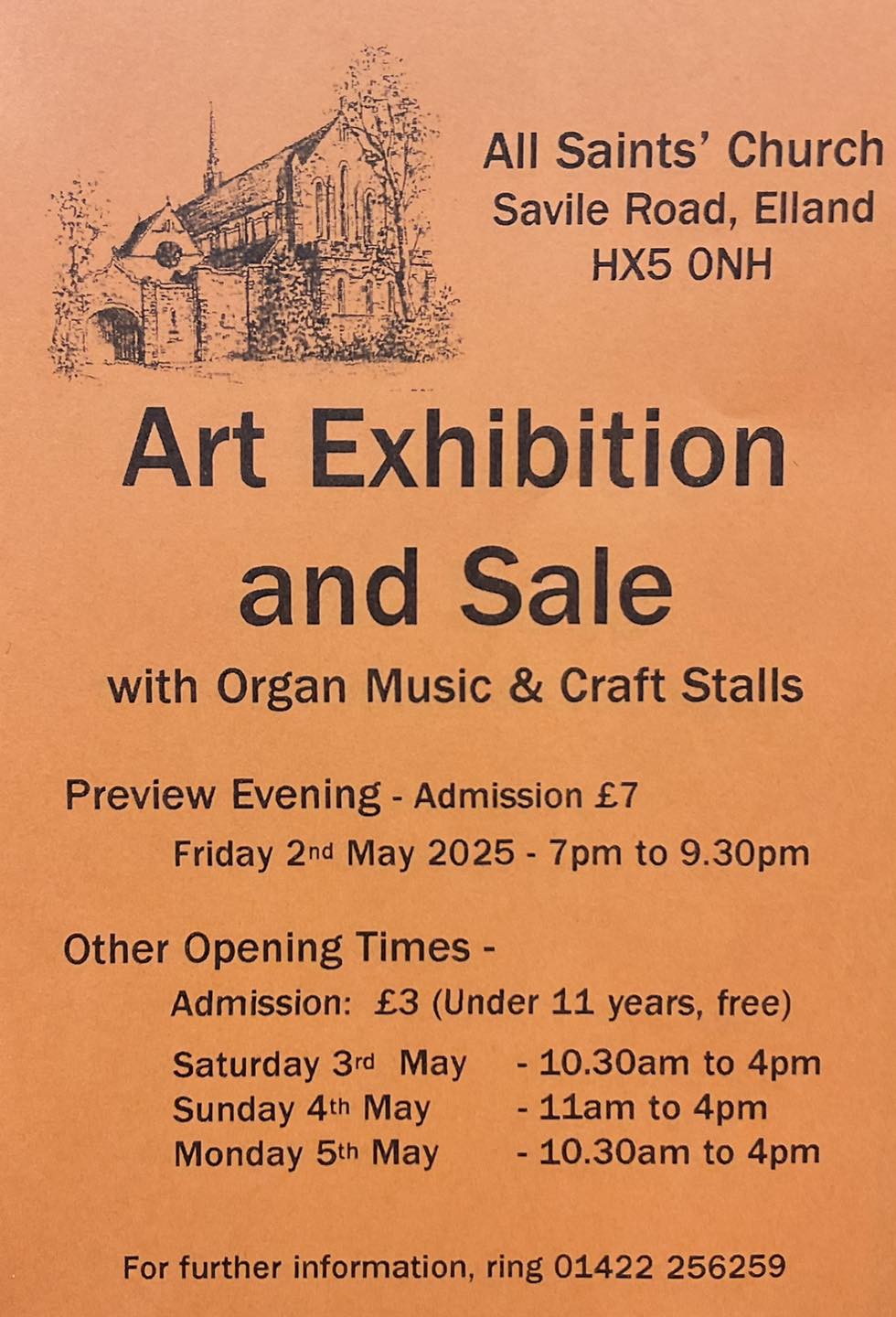 Art Exhibition and Sale over the May Bank Holiday with organ music, craft stalls and refreshments.