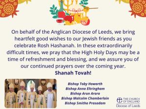 | | Follow us on Social Media | | The Rt Revd Arun Arora, the Church of England’s co-lead Bishop for Racial Justice and Bishop of Kirkstall, has called upon Christians “to reclaim both the flag and the faith that is being desecrated by those who would use both to divide us as a nation.” Bishop Arun was speaking at a licensing service on the evening of Wednesday, September 17 in East Leeds close to the Brittania Hotel where there have been weekly protests against those seeking asylum temporarily housed in the Seacroft area of the city. Read more here | | | Black History Month has begun, celebrating the power and pride of black communities, and our churches will be responding in a variety of ways. Throughout the month people will be sharing what Black History Month means to them. Read more here | | | Nine new diocesan interns have begun their new year of learning and service. Interns and their church leaders gathered for training and a chance to connect on Tuesday, September 17, sharing conversation, learning and a service of Holy Communion. Read more here | | | Black History Month begins on Wednesday, October 1, and churches across the diocese will be marking the month. On Saturday, November 1, the diocese will be holding a service to celebrate the month at St Margaret’s Thornbury. Read more here | | | This Fairtrade Fortnight, All Saints’ Ilkley is celebrating the renewal of their status as a Fairtrade Church. In response to a Leeds Diocesan Synod Motion encouraging our churches and schools to refresh their commitment to Fairtrade, passed last October, All Saints have worked to make sure Fairtrade is in all they are doing. Read more here | | | People from across Huddersfield gathered at Huddersfield Parish Church to celebrate the town on Saturday, September 20. Now in its third year, the ‘Celebrate Huddersfield’ event gathered people from different communities, of different ages, and celebrated the educational, civic, and cultural capital of the area. Read more here | | | Over 50 people who work with children and young people gathered at St George’s Lupset recently to be thanked, equipped, network and work out what they can do next. TEND events are run by the diocesan Children, Young People and Families Team, and aim to thank those involved in ministry with children and young people, equip them in that work, provide opportunities for networking and set people up for what they will do in their ministry next. Read more here | | | Our bishops have sent warm greetings and prayers to our Jewish friends, as Rosh Hashanah begins. Rosh Hashanah marks the Jewish New Year and is the first of the Jewish High Holy Days, running from Monday, September 22 to Wednesday, September 24. Read more here | | | How we can tackle poverty in the Huddersfield area was the subject of an event run by Huddersfield Mission. "Poverty Matters" brought together voluntary groups and partners, as well as Harpreet Uppal MP; the Revd Kerry Tankard, Chair of District for the Methodist Church; and the Rt Revd Smitha Prasadam, Bishop of Huddersfield, to hear lived experiences of rural and urban poverty in Huddersfield and seek ways for structural change. Read more here | | | Generosity Week 2025 runs from Sunday, September 28 to Sunday, October 5, and churches across the diocese are being encouraged to get involved. Generosity Week is an annual event where churches are invited to explore God’s generosity through eight days of service and worship materials. Read more here | | | Living and Learning from the diocese | | Various dates and locations |