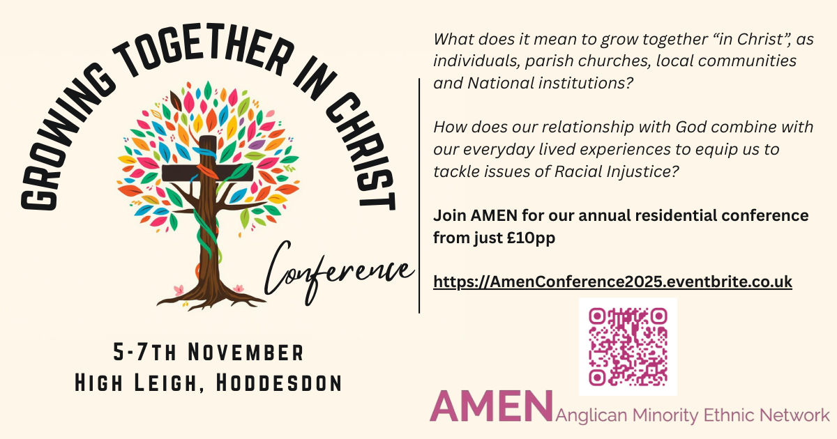 Christ is the head of the Church, the Church is the body of Christ and Christ lives in all. We are called to love one another and yet discrimination still persists. What does it mean to grow together “in Christ”, as individuals, parish churches, local communities and National institutions? How does our relationship with God combine with our everyday lived experiences to equip us to tackle issues of Racial Injustice?