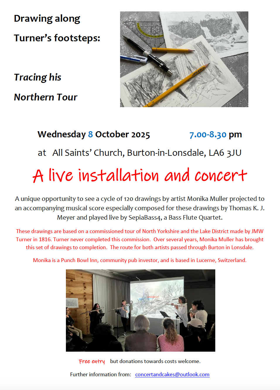 | | | Live installation and concert | Wednesday, October 8, 7.30pm, All Saints Burton-in-Lonsdale |