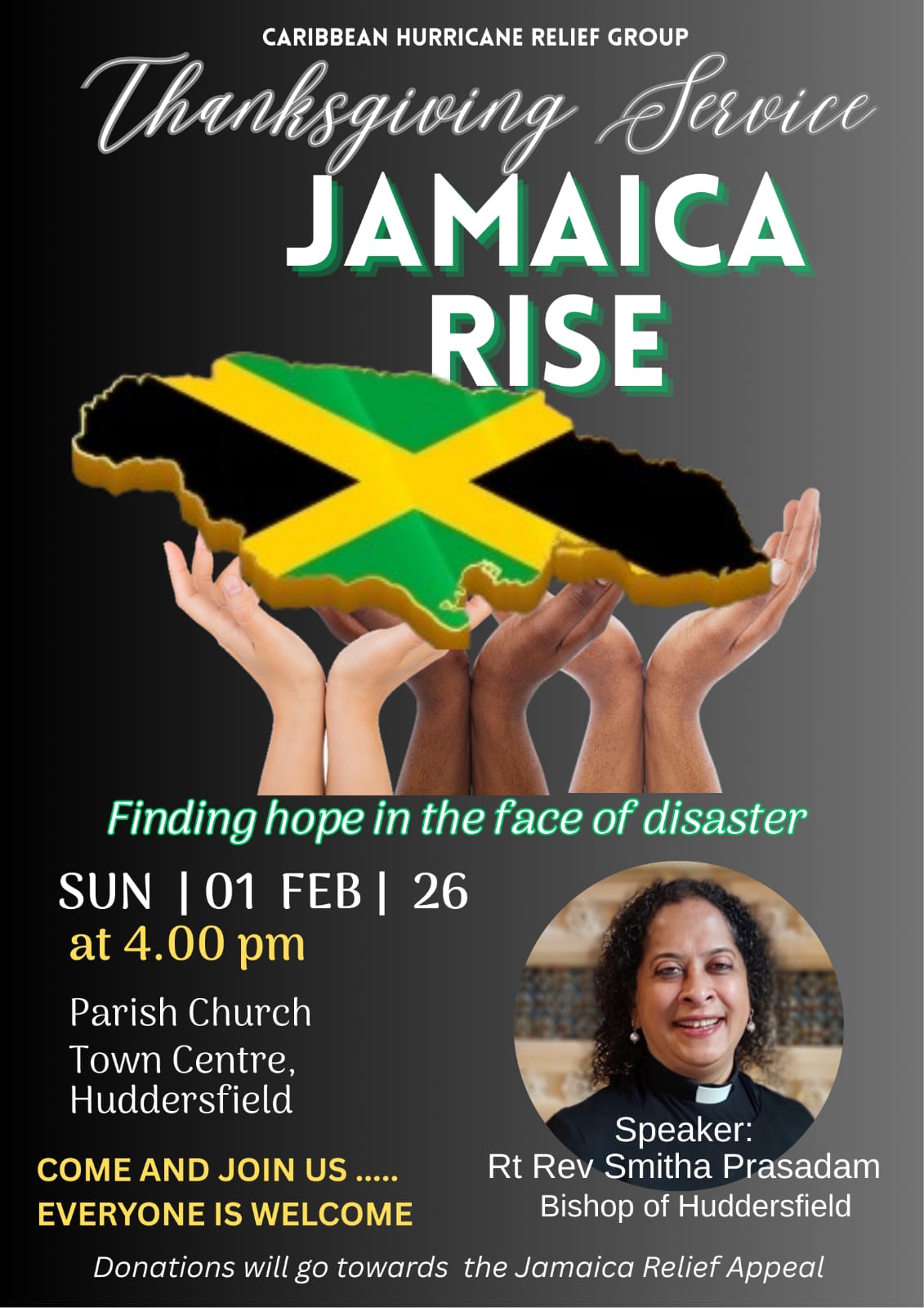 | | | Thanksgiving Service: Jamaica Rise | Sunday, February 1, 4pm, Huddersfield Parish Church | All welcome. The Rt Revd Smitha Prasadam, Bishop of Huddersfield, will be speaking. Donations will go towards the Jamaica Relief Appeal. | | | Friday, February 6 to Sunday, February 8, Cliff College, and Tuesday, May 19 to Wednesday, May 20, Yarnfield | |