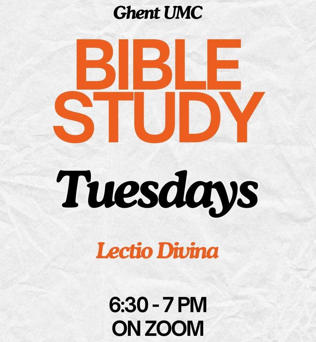 Each Tuesday evening, we have a short, online Bible Study practicing Lectio Divina, an ancient way of reading the Word and listening to the Spirit together. We meet 6:30pm - 7pm. You're invited to just log on and join Pastor Britney!