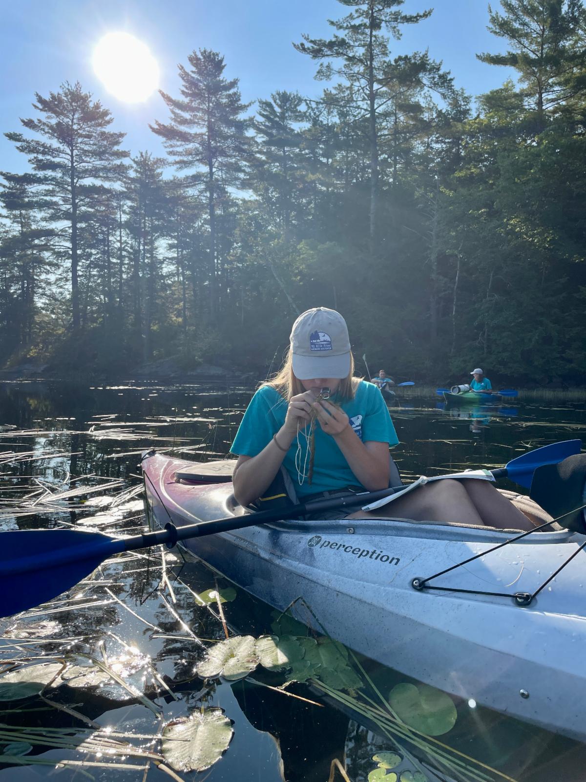30 Mile staff completed two pond-wide surveys by kayak: the first during the first week of June when the plant was in peak bloom (most visible) in Tilton, and the second during the second week of August. Throughout the season, BDTPA volunteers have continuously monitored shoreline areas. On September 8th, MEDEP completed a dive-tow survey in the portion of David Pond closest to the inlet from Tilton Pond. Dive-tow surveys involve a scuba diver being towed behind a boat through deeper waters not visible from the surface, ensuring thorough coverage of the pond’s littoral zone, where sunlight reaches the bottom and aquatic plants can live.