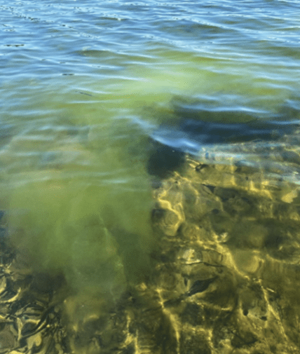 Gloeo is a type of algae that can be a nuisance when it accumulates along shorelines, and sometimes persists during the warmer weeks of the summer. We are still learning about Gloeo and its toxicity, but it can be a skin irritant to swimmers in areas where it’s found in higher abundance. Read more about Gloeotrichia here.