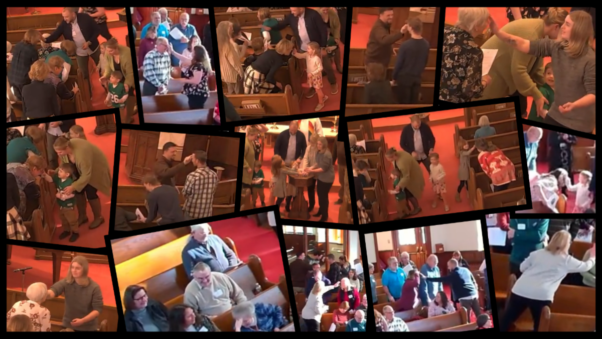During the children's message on Sunday, the children celebrated the baptism of Jesus. They were joined by their parents, grandparents, and baptismal sponsors to make sure that everyone experienced the risen Christ by getting a wet cross marked on their forehead. |