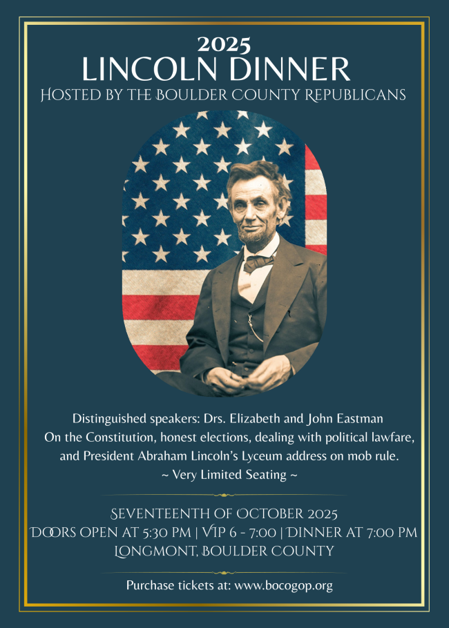 We invite all Boulder County Republicans to join us, even if you're only interested in the information part. Our country is rapidly changing before our very eyes, and the best place to effect change is right here in Boulder County.
