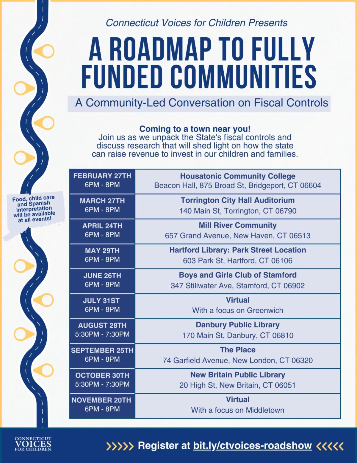 Join our advocacy partner CT Voices for Children for an event series unpacking the state’s fiscal policies and exploring solutions to raise revenue for critical investments in our communities.