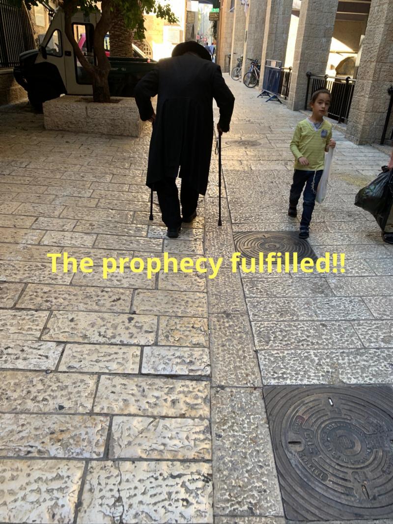 כֹּה אָמַר ה' צְבָאוֹת עֹד יֵשְׁבוּ זְקֵנִים וּזְקֵנוֹת בִּרְחֹבוֹת יְרוּשָׁלָם וְאִישׁ מִשְׁעַנְתּוֹ בְּיָדוֹ מֵרֹב יָמִים: וּרְחֹבוֹת הָעִיר יִמָּלְאוּ יְלָדִים וִילָדוֹת מְשַׂחֲקִים בִּרְחֹבֹתֶיהָ: