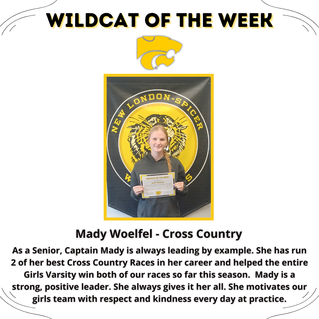 Our first Wildcats of the Week for 2025-2026 are Brooke Glauvitz, Girls Tennis and Mady Woelfel, Cross Country.