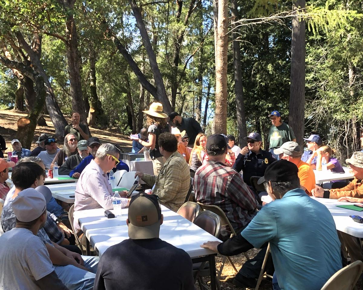 Attendees also heard from CAL FIRE Battalion Chief Marshall Turbeville on wildfire mitigation and community safety in the wake of the 2020 Walbridge Fire. Then, the group took a walking tour of the property to see goats in the process of grazing to manage vegetation and reduce wildfire risk. Chase Cianfichi, owner of Chasin Goat Grazing, spoke about how to work with a contract grazer to manage fuels across grasslands, shrubland and forest understories.