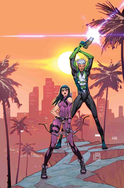 Not to mention Kate's former Young Avengers teammate has brought a mountain of trouble to the West Coast! Can Kate clean up after Noh-Varr while keeping him far away from her love life? Read on, True Believers! Rated T
