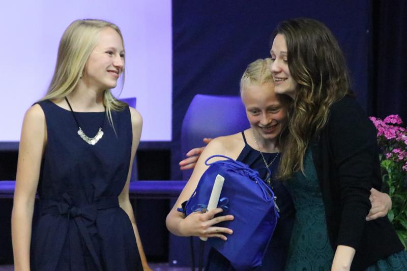 Following Lisa's speech, Assistant Head of School Laurie Orsic presented special certificates to the graduates, describing their unique gifts and interests, which were carefully identified by the 9-12 teachers. Specials teachers also recognized each graduate by sharing lists of each child's distinguishing traits as they gave them their personalized graduation posters.