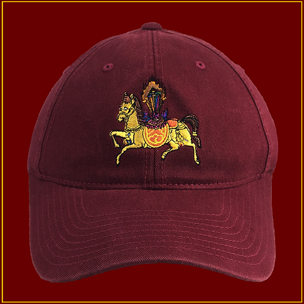 The Windhorse design comes embroidered on 3 colors of Dharma Caps.
