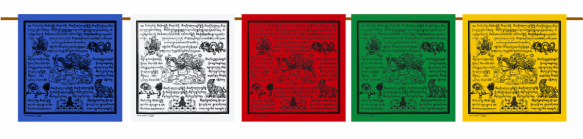 The Windhorse symbolizes the uplifting lIfe force energy that brings good fortune. The Tibetan word for Windhorse is Lung-rTa (pronounced: loong-ta). Besides meaning “Wind,” "Lung" is also a word for “life force,” similar to the Sanskrit word “Prana.” Increasing one’s "Lung-ta" increases their health, wealth and power. On the contrary, low lungta is thought to be the cause of hardships, ill health, and spiritual stagnation. Through meditation, certain rituals, prayer, meritorious actions, and ethical living, individuals can nurture their inner Windhorse, building physical, mental, and spiritual fortitude to face life's challenges. In a fast-paced world where individuals often face stress and emotional exhaustion, the Windhorse offers a reminder of the importance of inner strength and alignment with the forces of nature and spirituality. Putting up Wind Horse prayer flags is one of the easiest and most effective ways to raise one's Lungta. As the wind blows by the prayer flags the Wind Horse spreads its blessing through the surrounding environment, increasing the well-being and good fortune of all beings in the area.