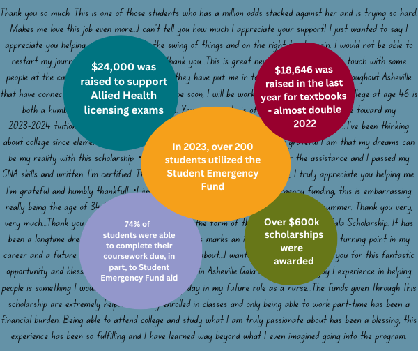 2023 was another busy and exciting year for A-B Tech and A-B Tech College Advancement. We helped fund numerous special projects for the College, raised over 20 percent more at this year's Autumn in Asheville, and awarded over $600,000 in scholarships!