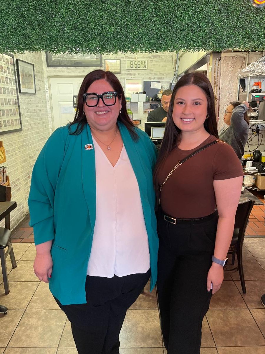 CP&A Account Coordinator, Paulina Alvarez, and Chapman University Vice President of Community Relations, Alisa Driscoll, at the "Eggs and Issues" event hosted by the Orange Chamber of Commerce | |