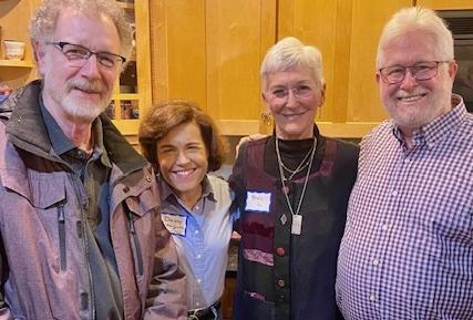 Z’alumni Z’ing-along: On December 15, alumni and current singers gathered at the home of Alan (“Tep”) Teperow and Suzanne Hanser for an informal Winter Warmup. Jeff Klepper led the troops in some songs, followed by an array of Josh Jacobson’s and Larry Sandberg’s selected Zamir favorites, with Ed Swanborn at the piano (and Nancy Swanborn ably turning pages, as always). Thanks to Larry for his tech wizardry, including offering the event on Zoom for our long-distance or stay-at-home friends. Pictured (l-r): Jeff Klepper, Zamir board member; Dawn Ringel, board member; Ronda Jacobson, Herbie Birnbaum