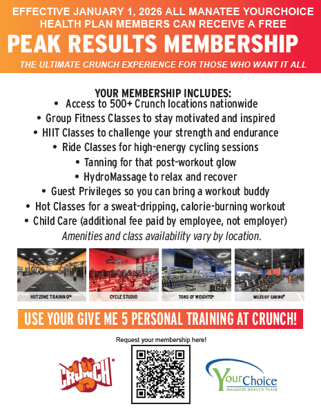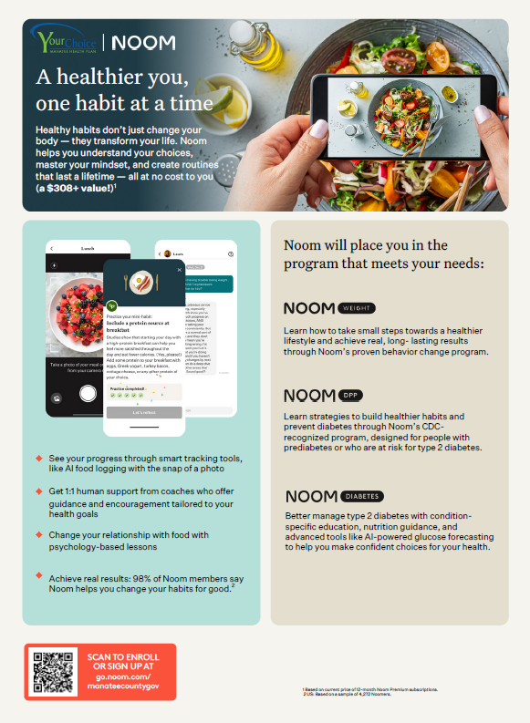 Eligibility: Employees and Dependents 18+ enrolled in the Manatee YourChoice Health Plan
