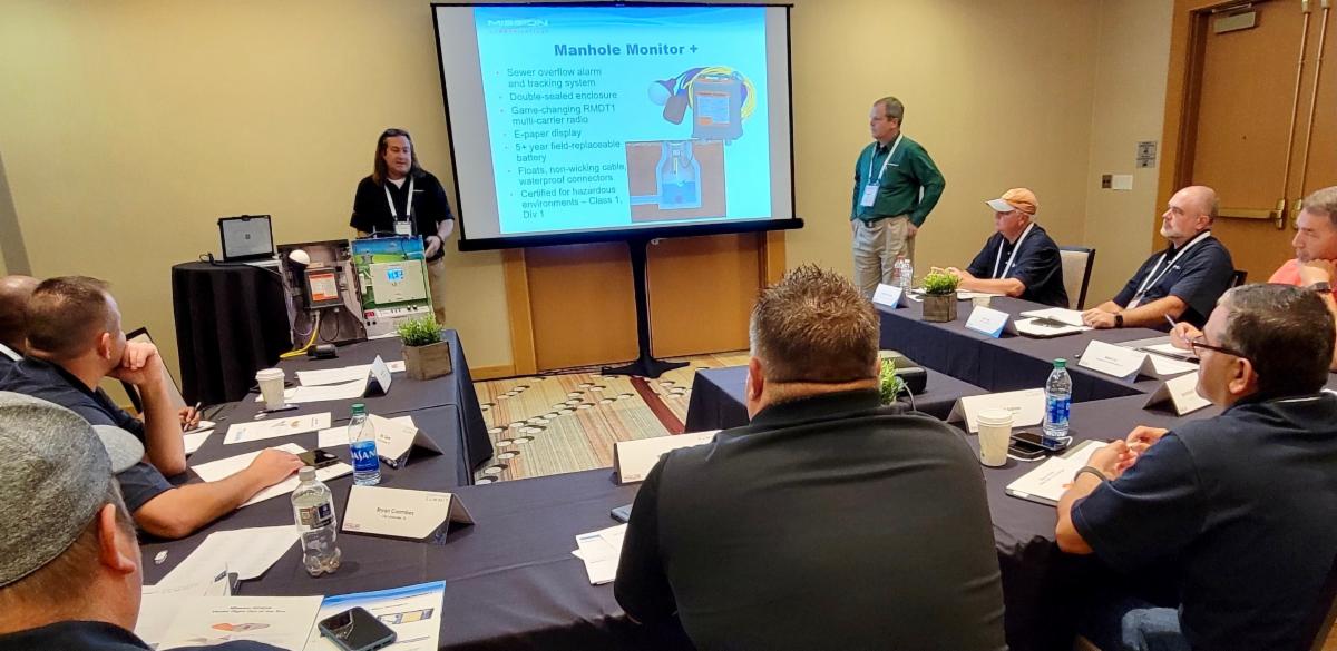 Crousillac and Robinson present to a group of industry professionals about Mission’s Manhole Monitor Plus.