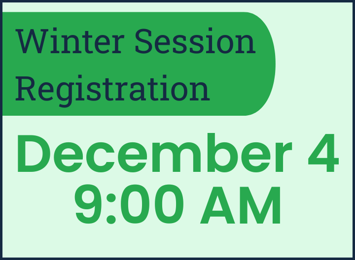 Save the date! Winter Registration will open December 4, 2025 at 9:00AM.