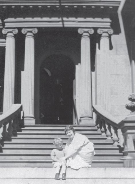 Sabina Grady with a Libby grandchild on the Mansion's steps, ca. 1920.