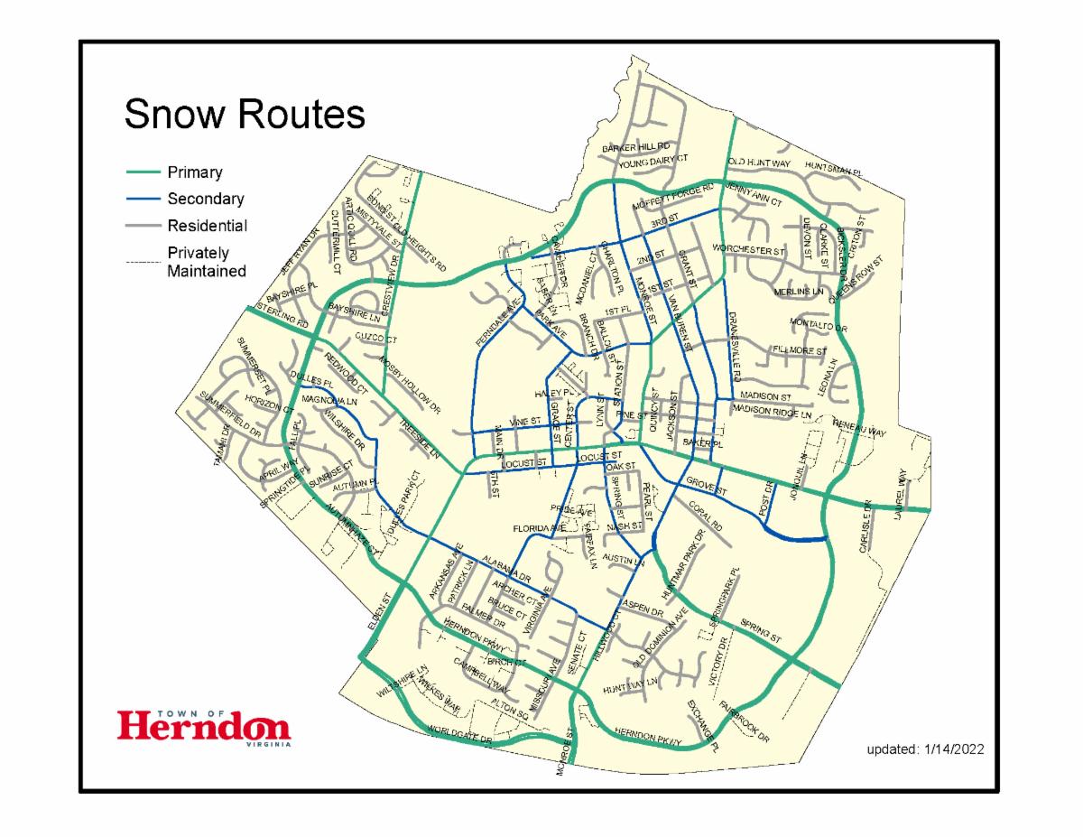 For updates on town snow operations, visit the town’s website at www.herndon-va.gov or our Facebook page at www.facebook.com/herndon.gov. In an emergency, call 911.