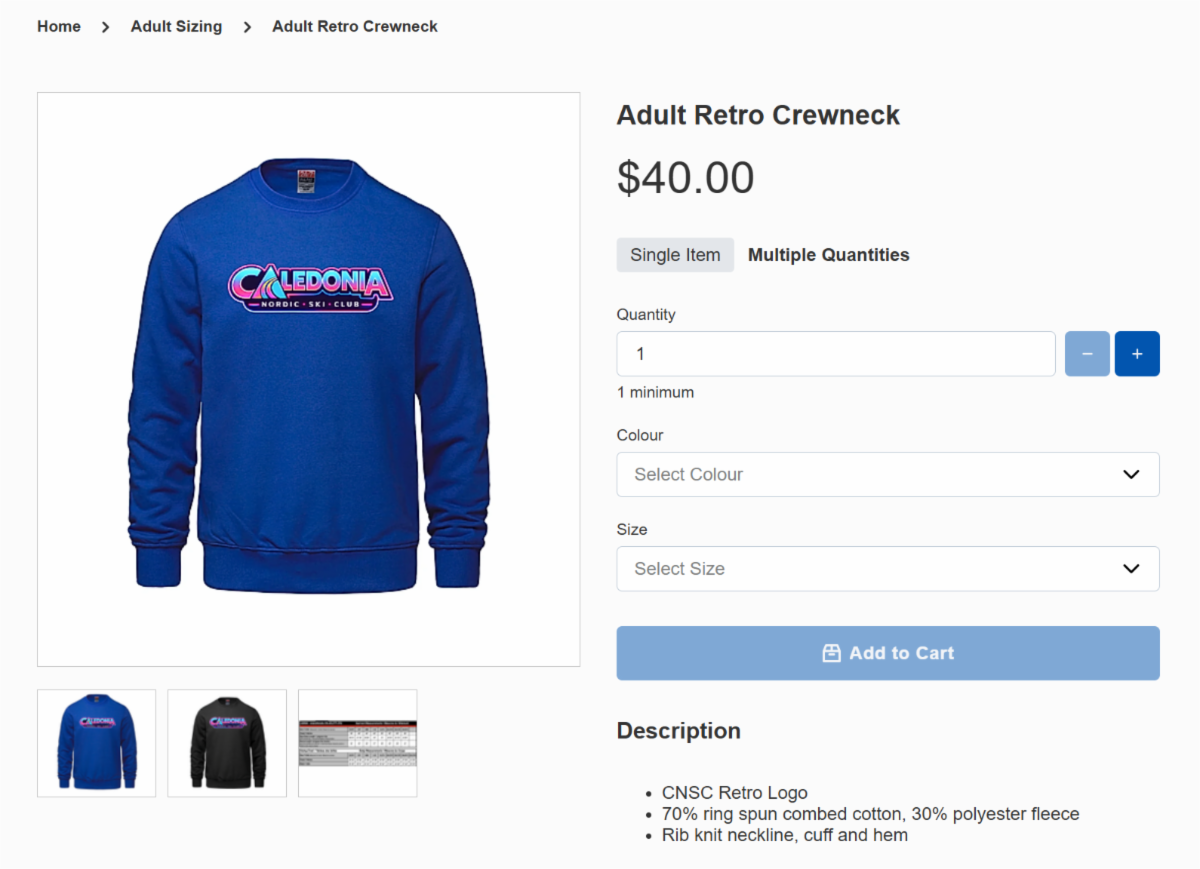 Orders are placed online and typically take about two weeks to complete. It’s an easy way to support your club, support local, and look good doing it.
