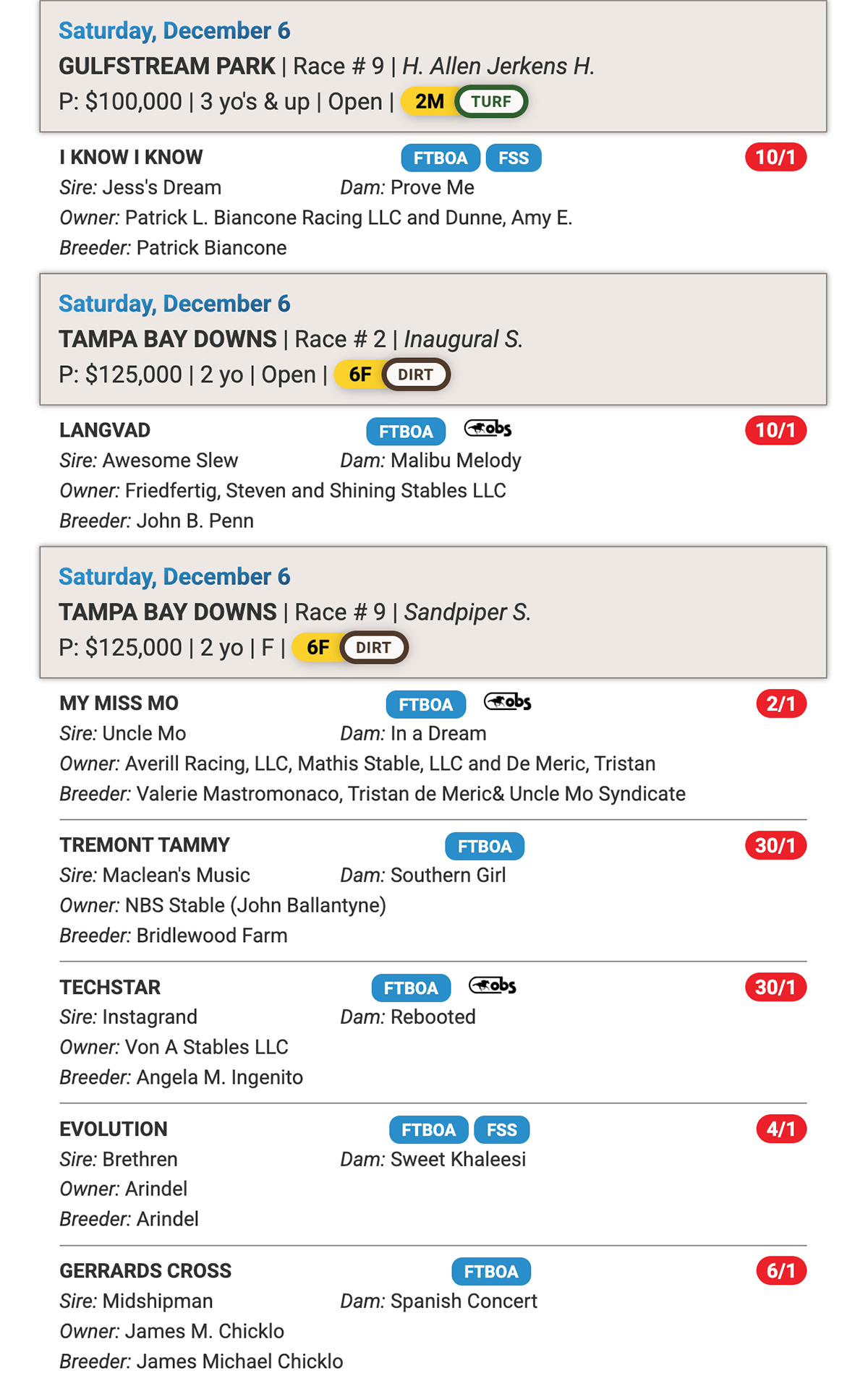 • My Miss Mo, Gerrards Cross, Evolution Lead Strong Florida-bred Contingent in Sandpiper