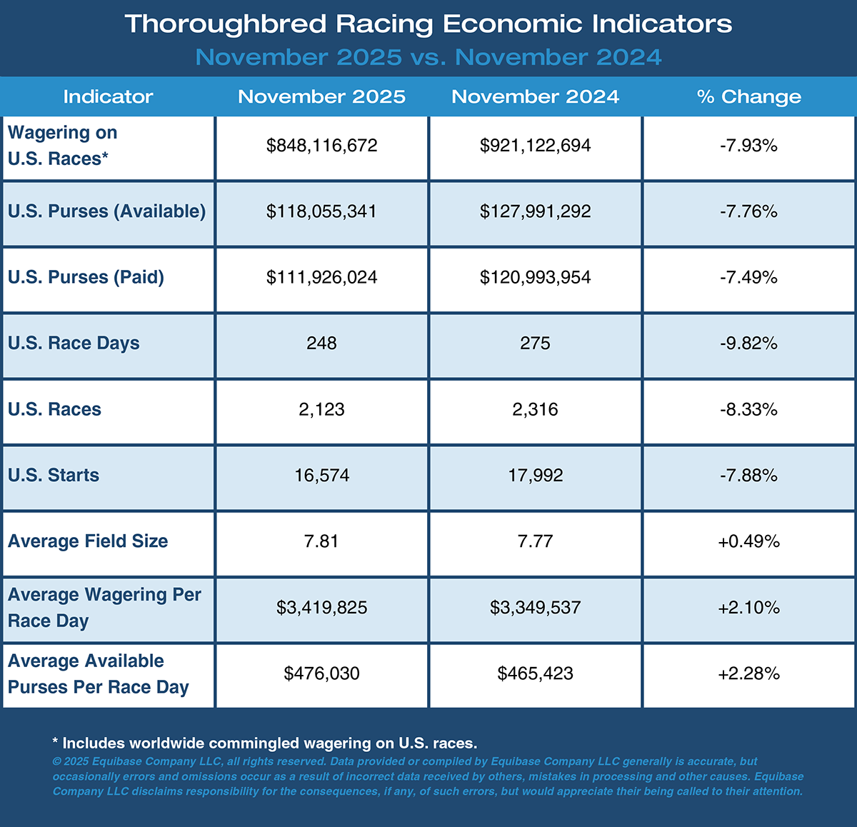 • Thoroughbred Racing Economic Indicators November 2025