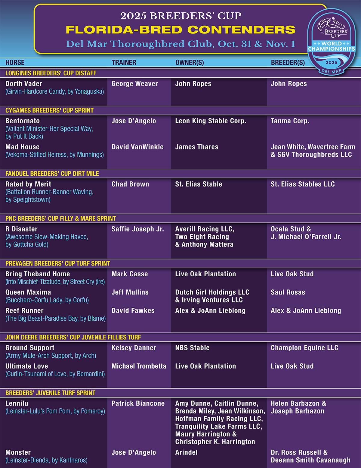 • 2025 Breeders’ Cup Florida-bred Contenders