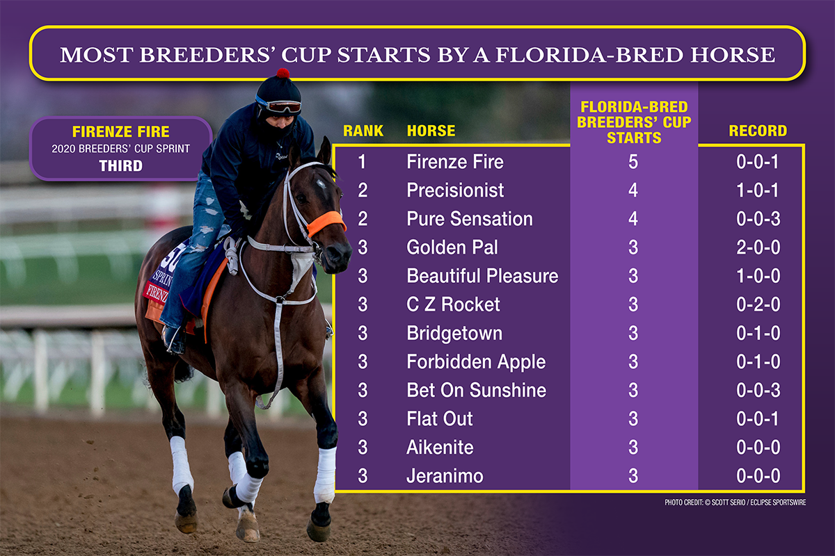 • Most Breeders’ Cup Starts by a Florida-bred Horse