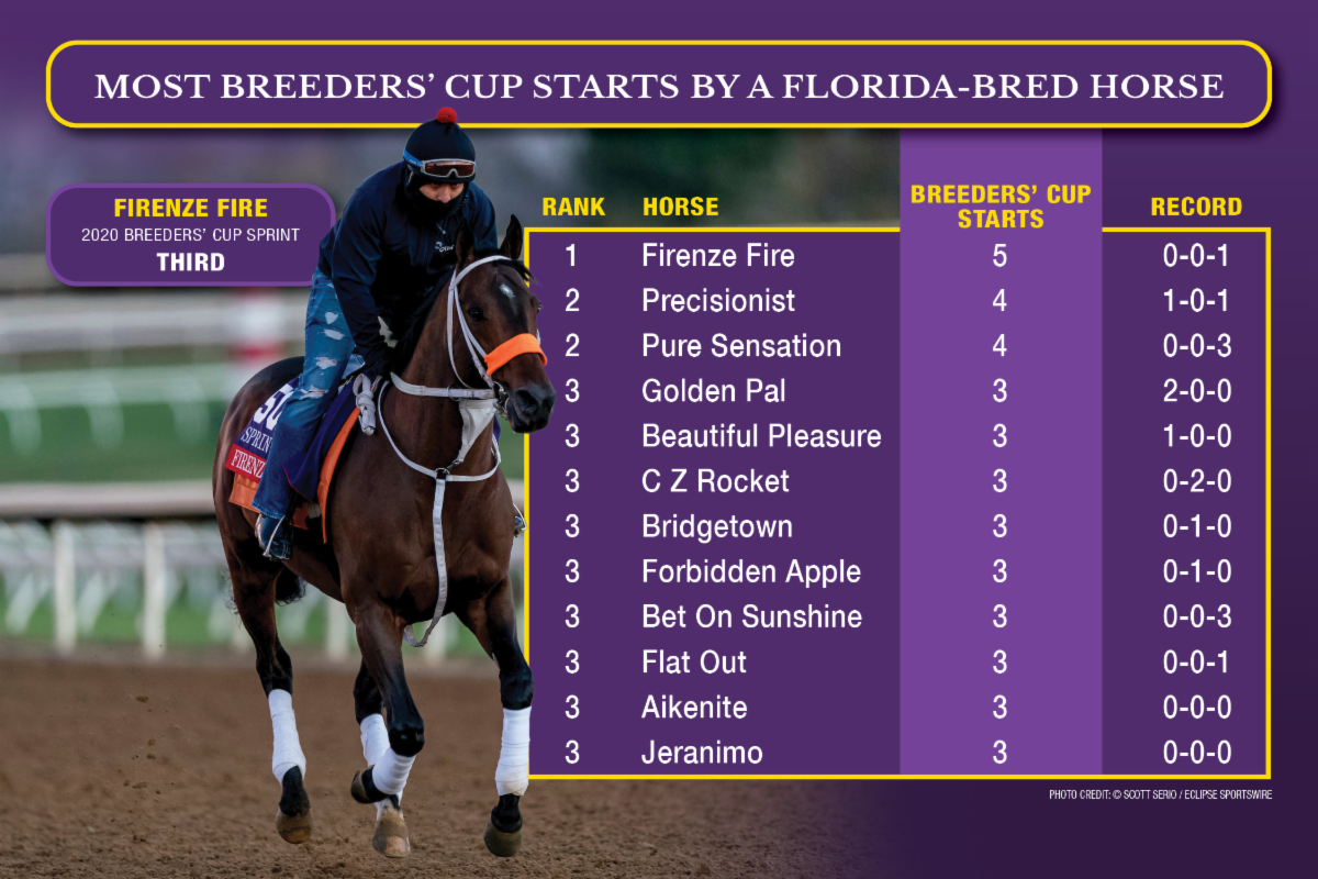 • Most Breeders’ Cup Starts by a Florida-bred Horse