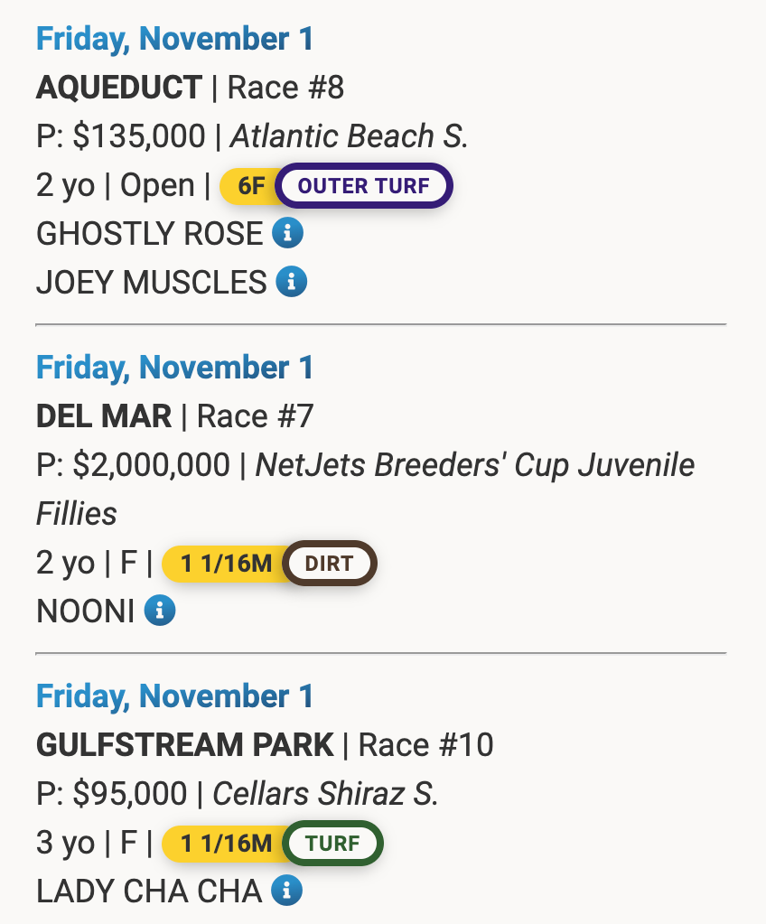 • 2024 Breeders' Cup Post Times and Broadcast Schedule