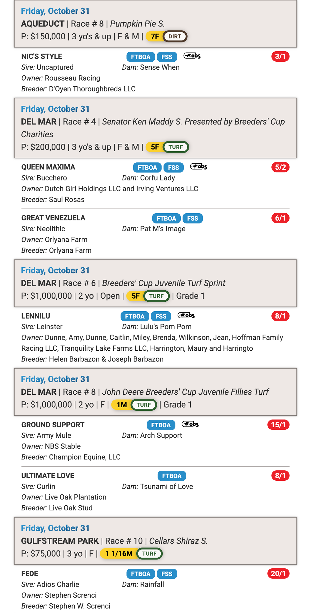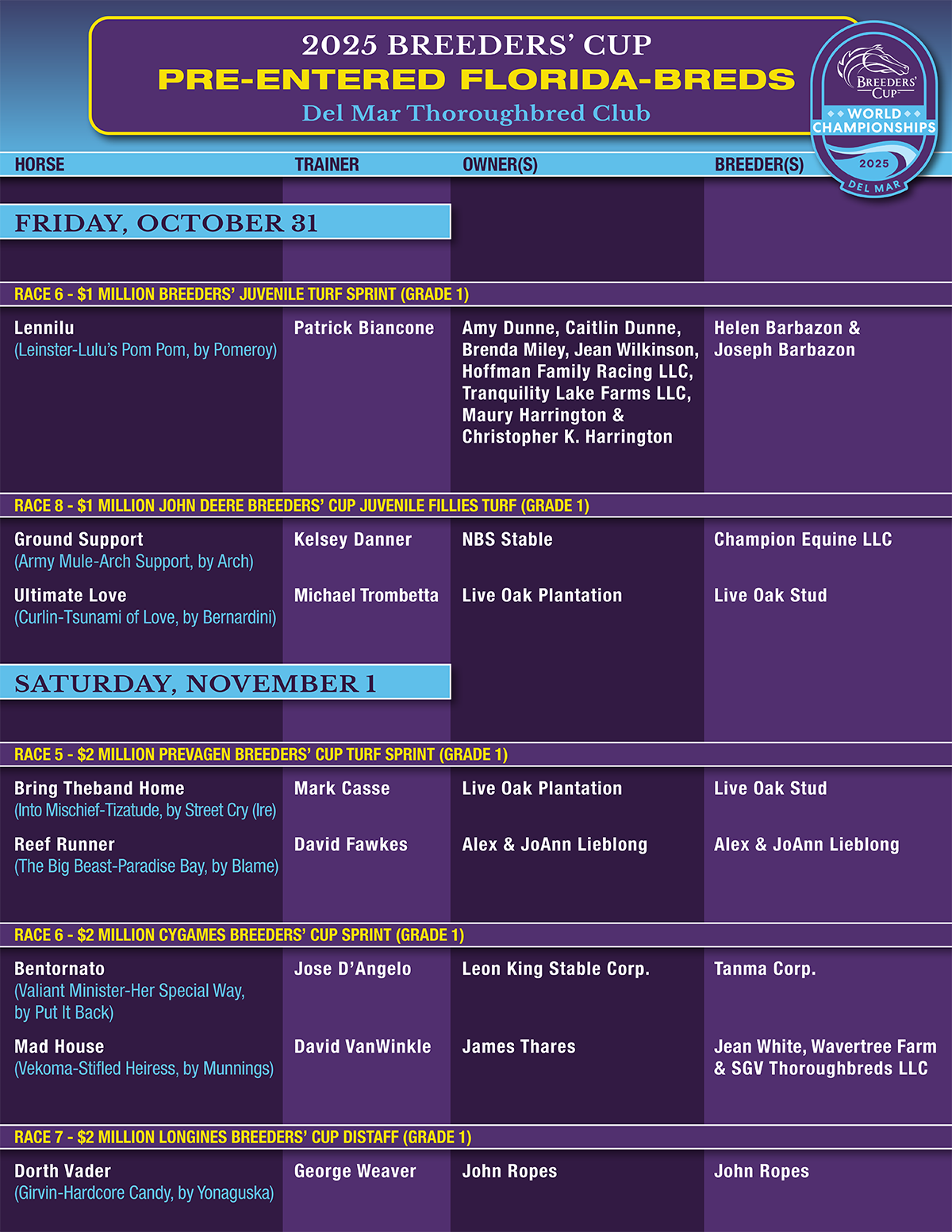 • 2025 Breeders’ Cup Florida-bred Contenders