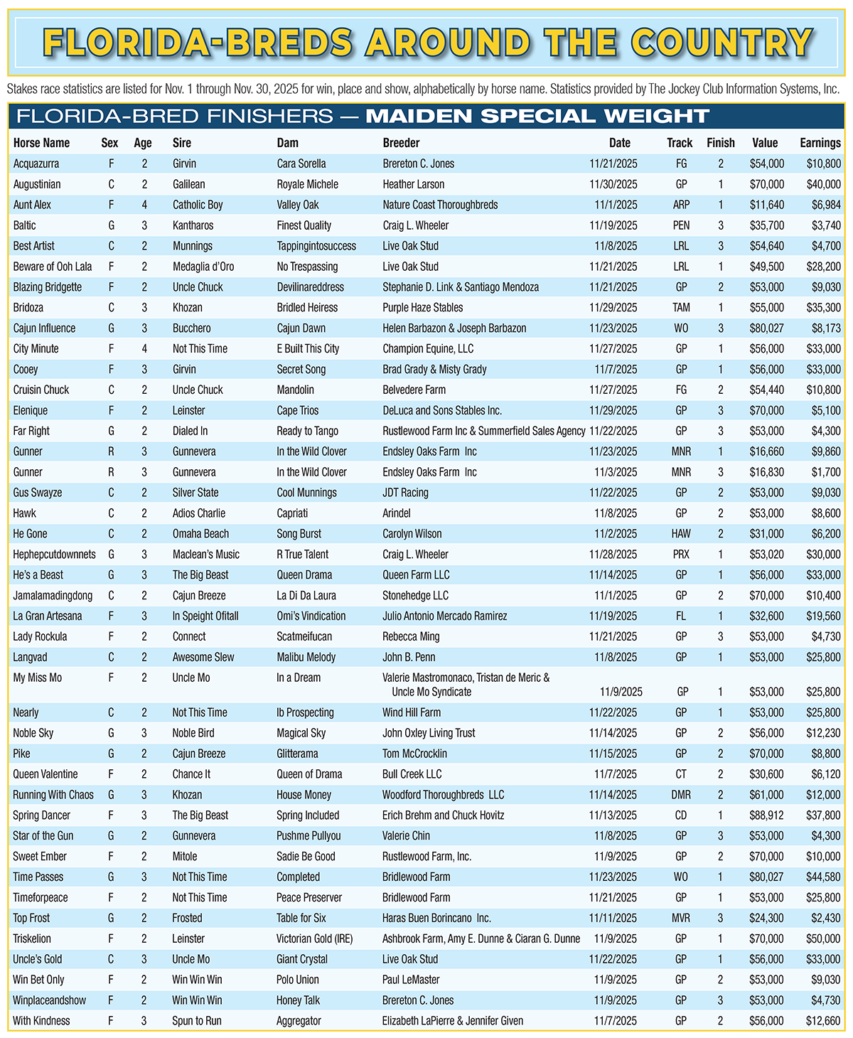 • Florida-breds Around the Country