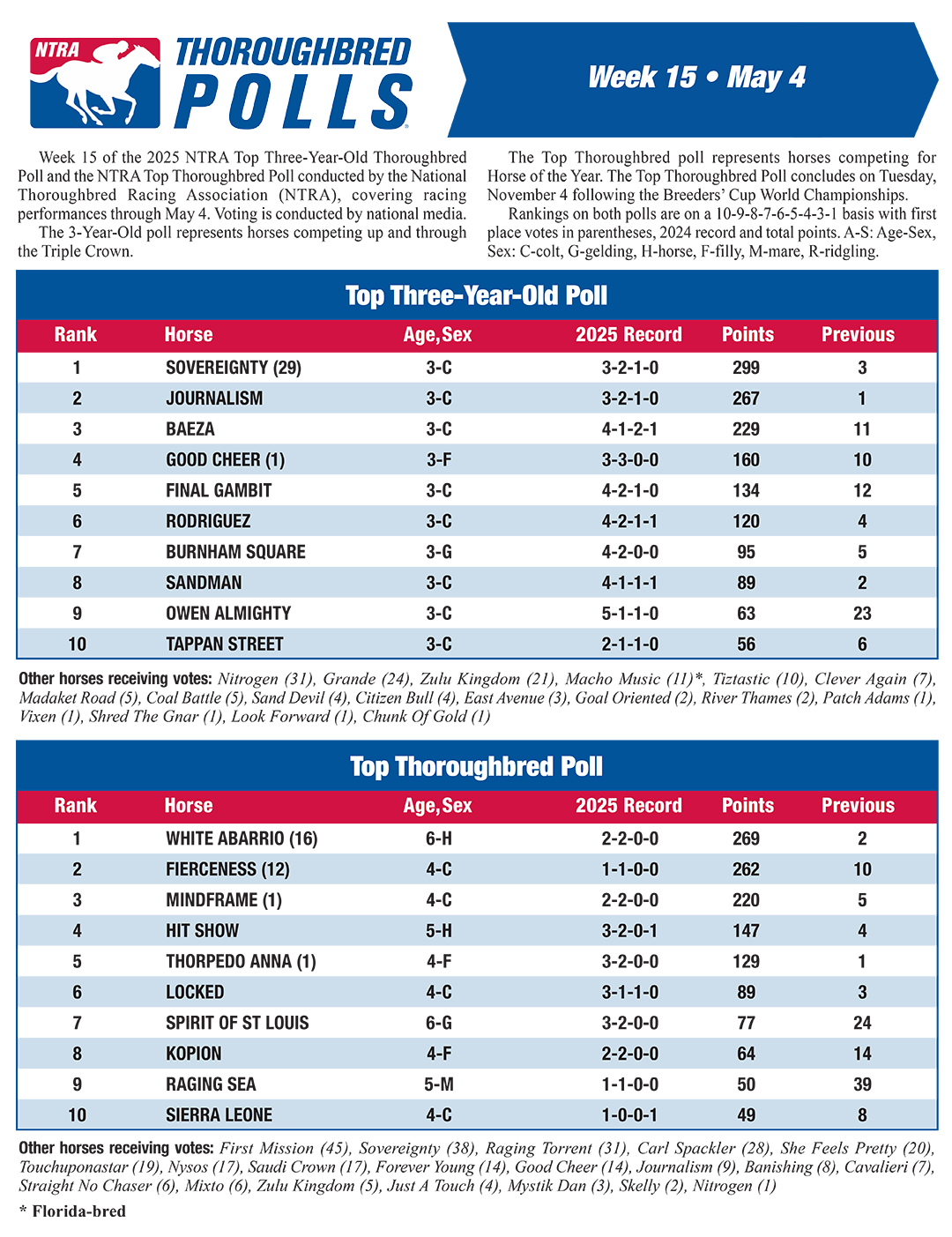 • NTRA Top Thoroughbred Poll