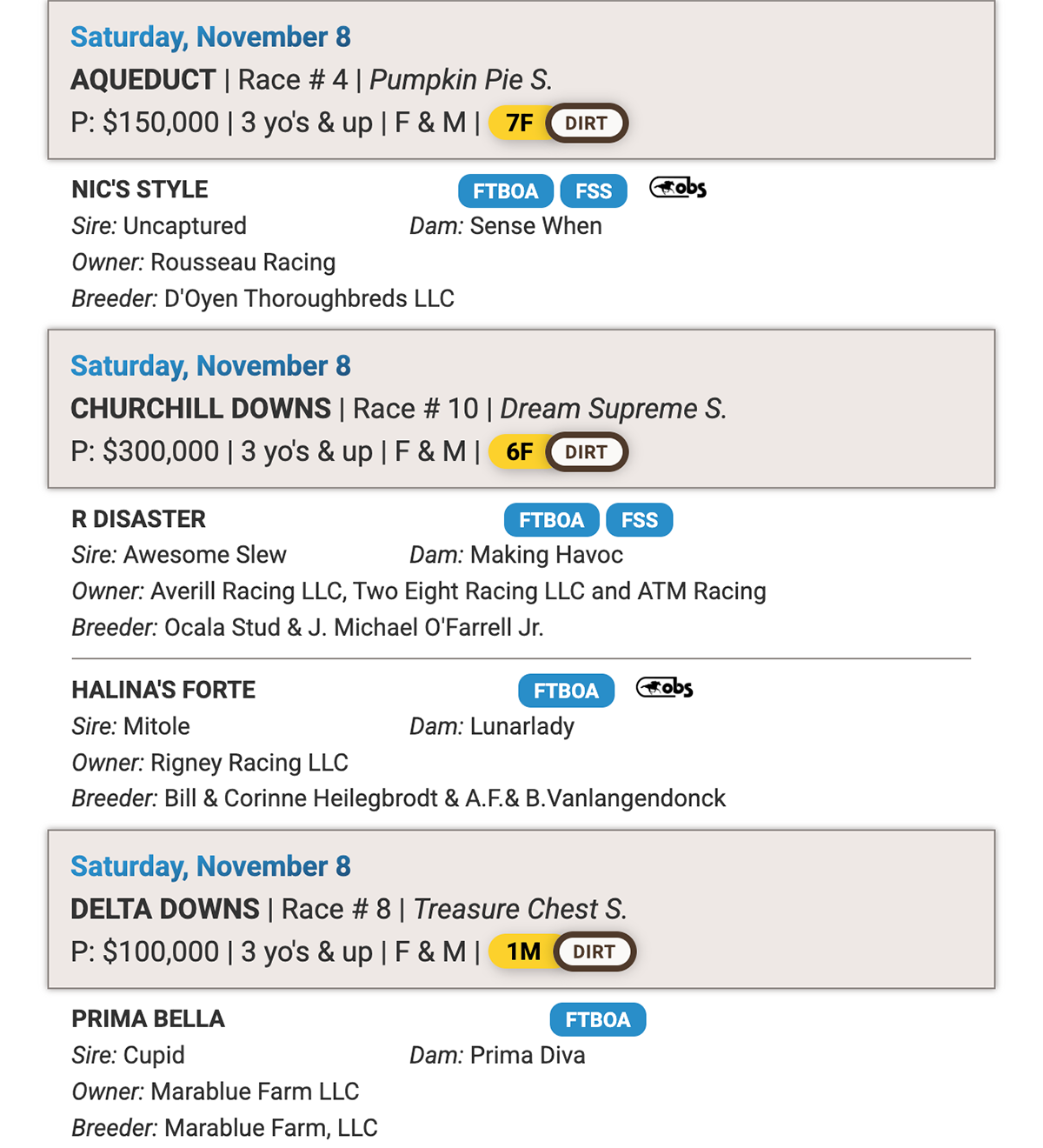 • Graded Stakes Winning Florida-bred Sabatini Brings $1.35 at Fasig-Tipton November Sale