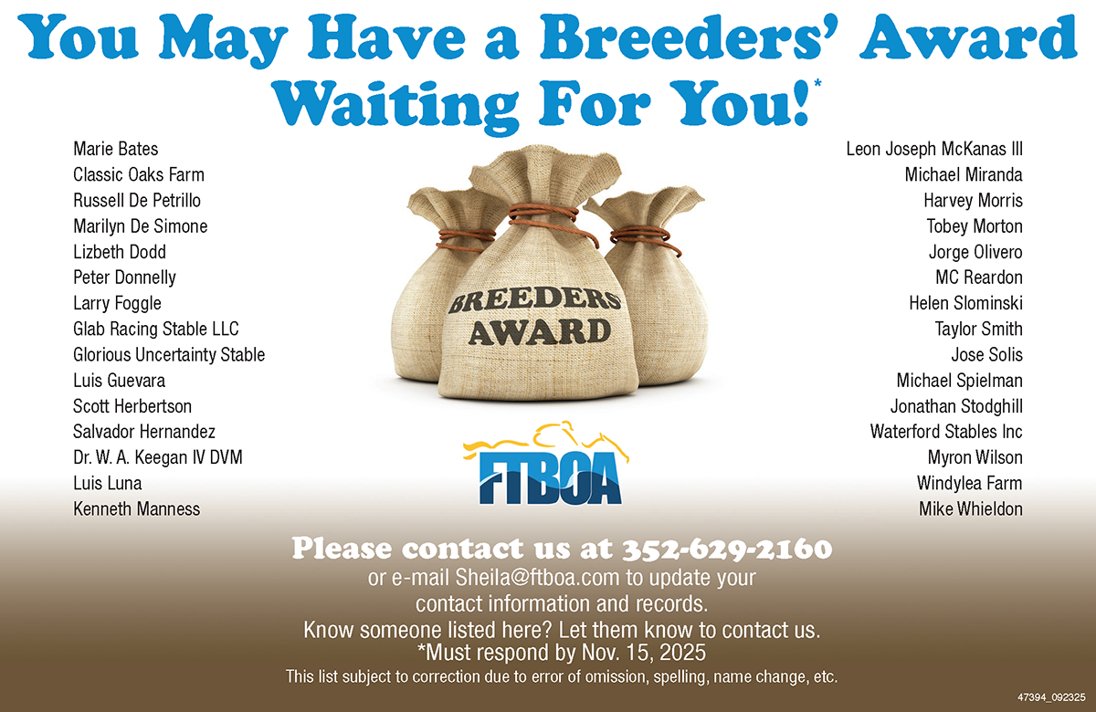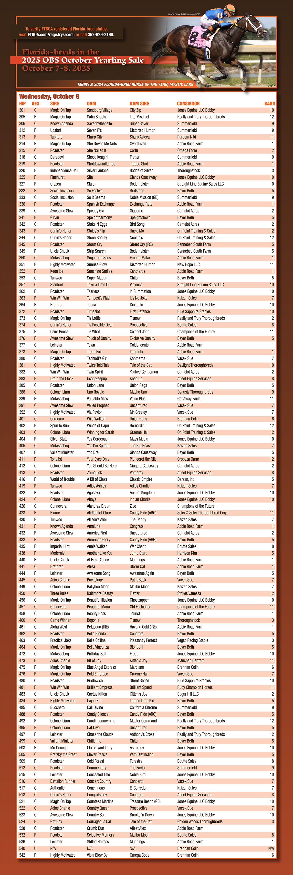 • Check Florida Sire Stakes Eligibility: 2025 OBS October Yearling Sale