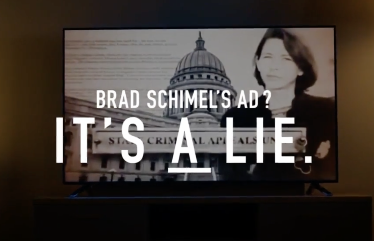 Another ad says Judge Schimel is lying to you about abortion and will ban it if elected. The ad features him speaking on the 1849 statue, and he says in a clip, “There is not a constitutional right to abortion in our state.”