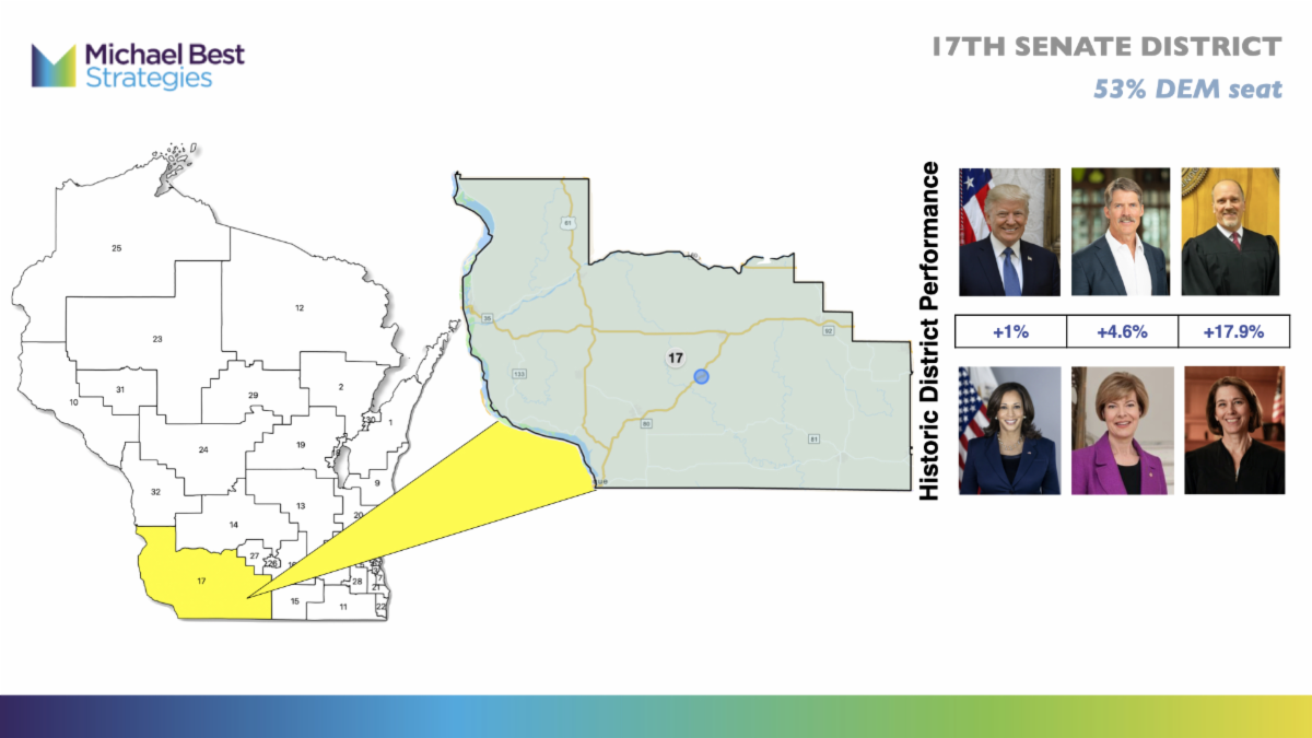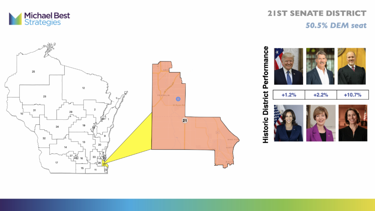 The district, significantly redrawn under new legislative maps, now stretches north from Racine into Milwaukee suburbs like Franklin. It has become more competitive: Vice President Kamala Harris and Senator Tammy Baldwin both carried the district in 2024 by narrow margins.