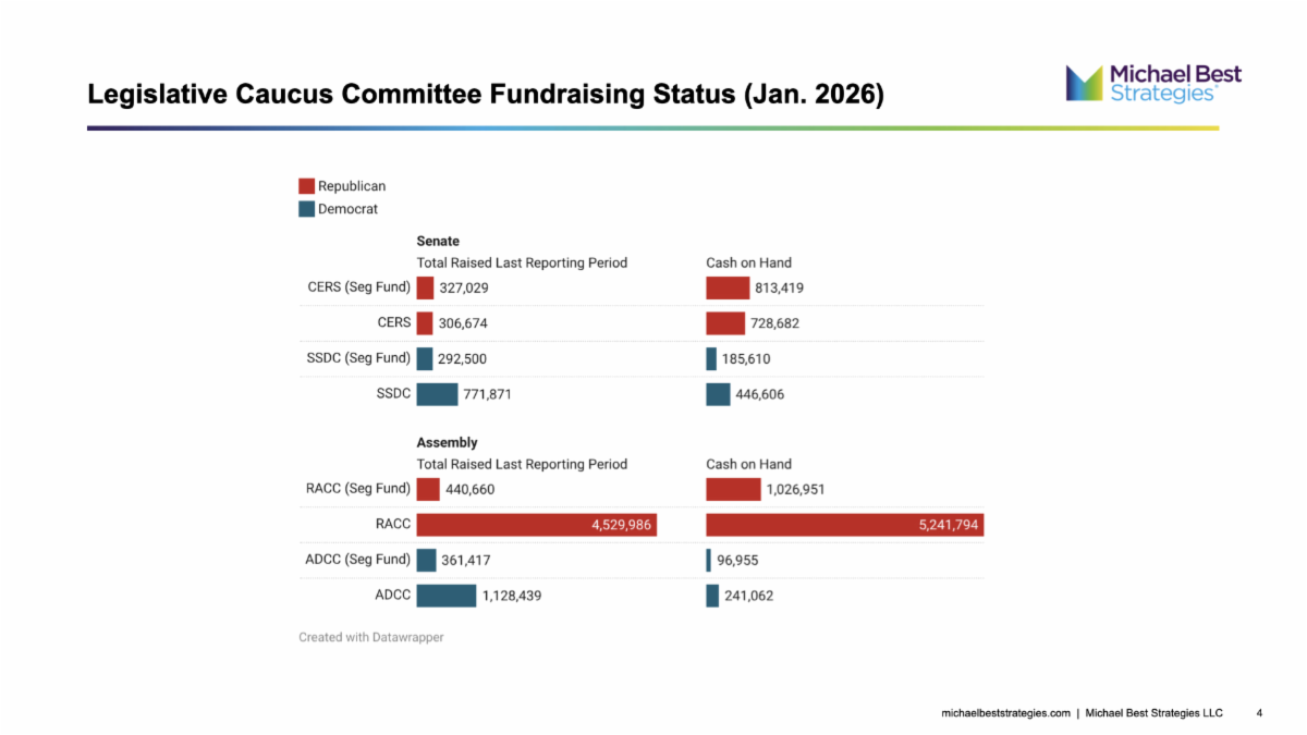 The filings show each caucus’ position heading into 2026, when control of the Legislature will be contested. RACC reported $5.2 million cash on hand, compared with $241,062 for the ADCC. Meanwhile, CERS reported $728,683, and the SSDC reported $446,606.