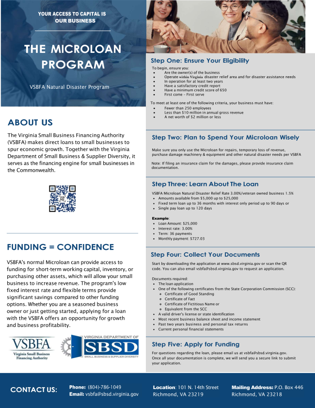 In response to challenges posed by Hurricane Helene, the Virginia Small Business Financing Authority (VSBFA) is offering microloans to businesses in Wise County and surrounding Southwest Virginia counties that have been recognized as federal natural disaster areas.