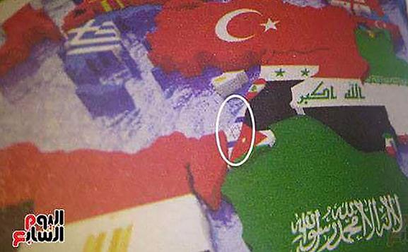 Egyptian Historian (remember Israel and Egypt signed a Peace Treaty) complained to the Education Ministry about the tiny section of a Middle East map, published in an 8th grade Egyptian school book, which indicated Israel. See map below. This, apparently, was a