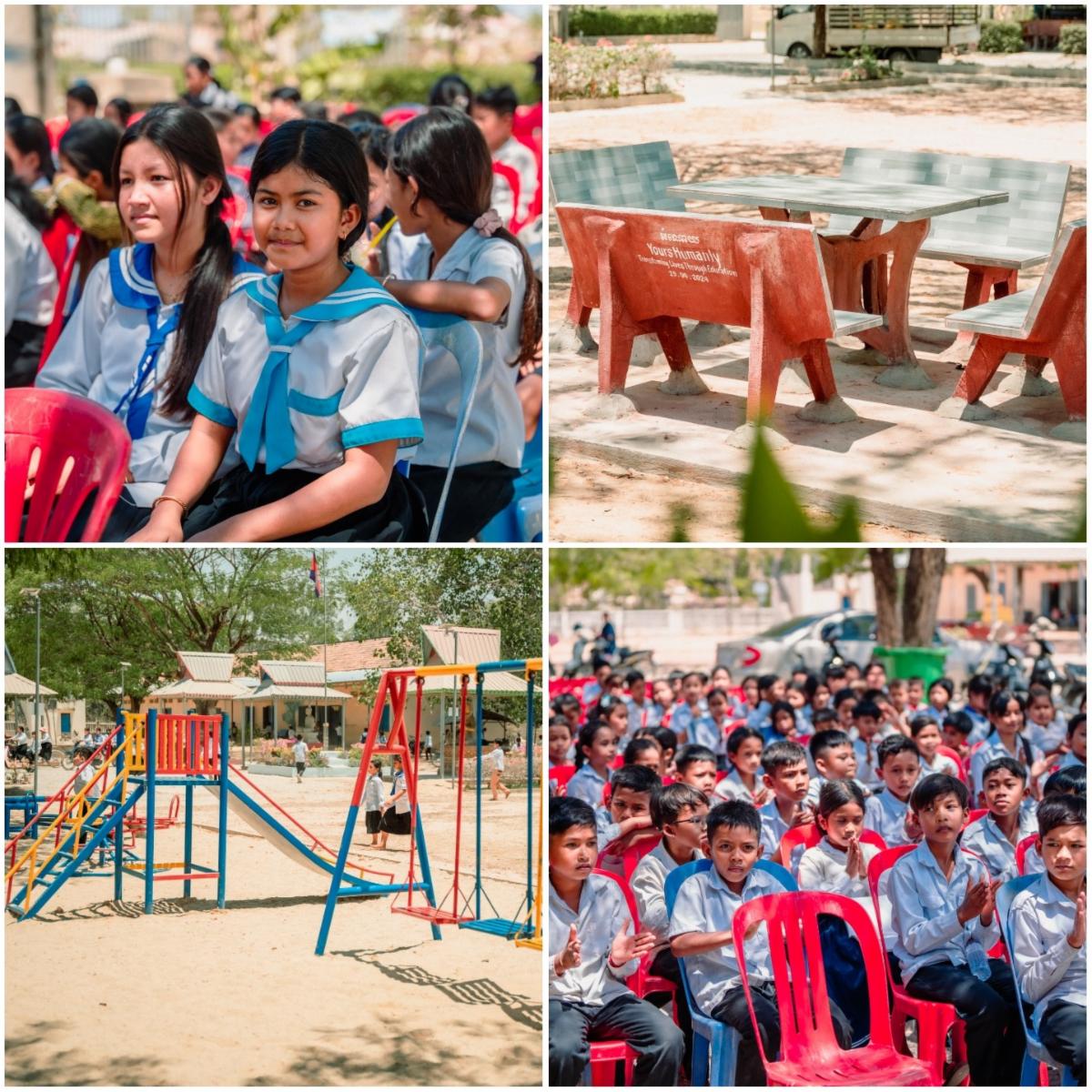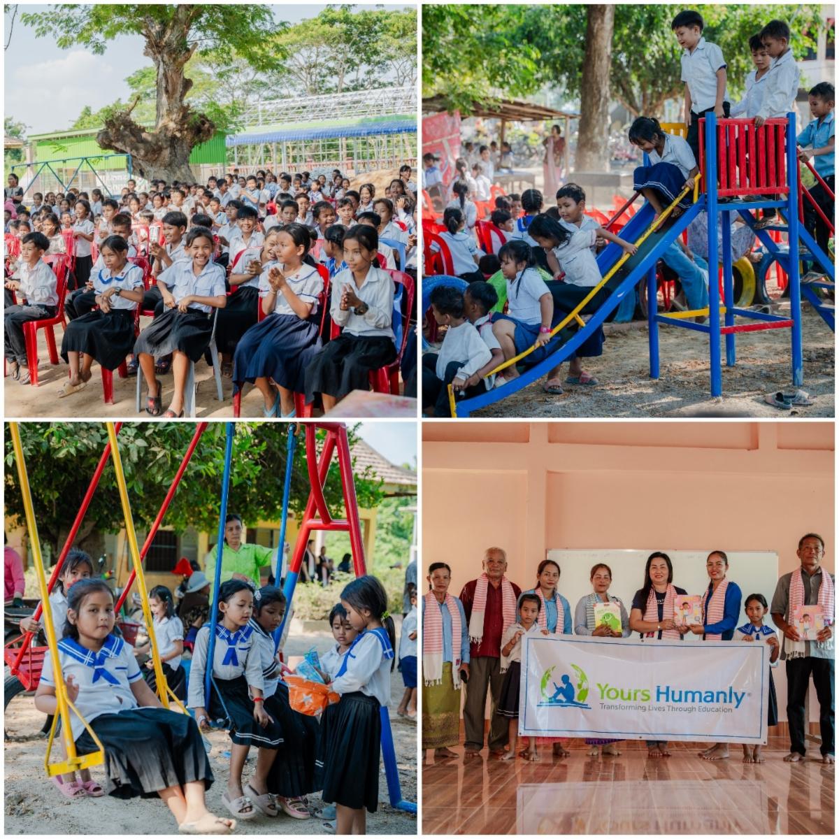At an underserved elementary school in Prey Veng, Cambodia, home to more than 250 students, Yours Humanly funded and constructed a new playground with quality outdoor play equipment—a safe and special place for children of this school and neighboring schools to come together to play and socialize. We also provided books and educational materials, and completely renovated one of the school’s classrooms, creating a safer, more pleasant learning environment for students and teachers.