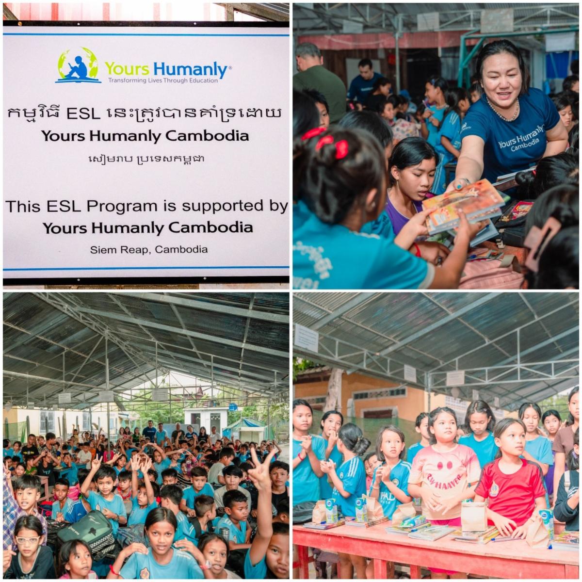 Yours Humanly has established a stand-alone ESL (English as a Second Language) program in Siem Reap, Cambodia, for children in desperate need of even the barest of necessities. Here, under the roof of a structure we renovated, we offer more than 250 severely impoverished children the opportunity to learn English through structured classes with qualified English instructors and age-appropriate books and learning material. Once the children complete the multi-year program, they will be able to read, write, and speak English, giving them a bilingual advantage in an increasingly competitive world where English is the most widely spoken language.